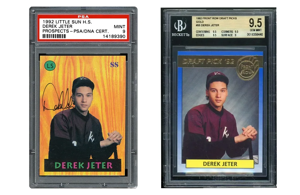 When buying a Derek Jeter card, grading is everything. Because his cards were produced during the «Junk Wax» era (high production volumes), the value is tied almost entirely to the condition.
