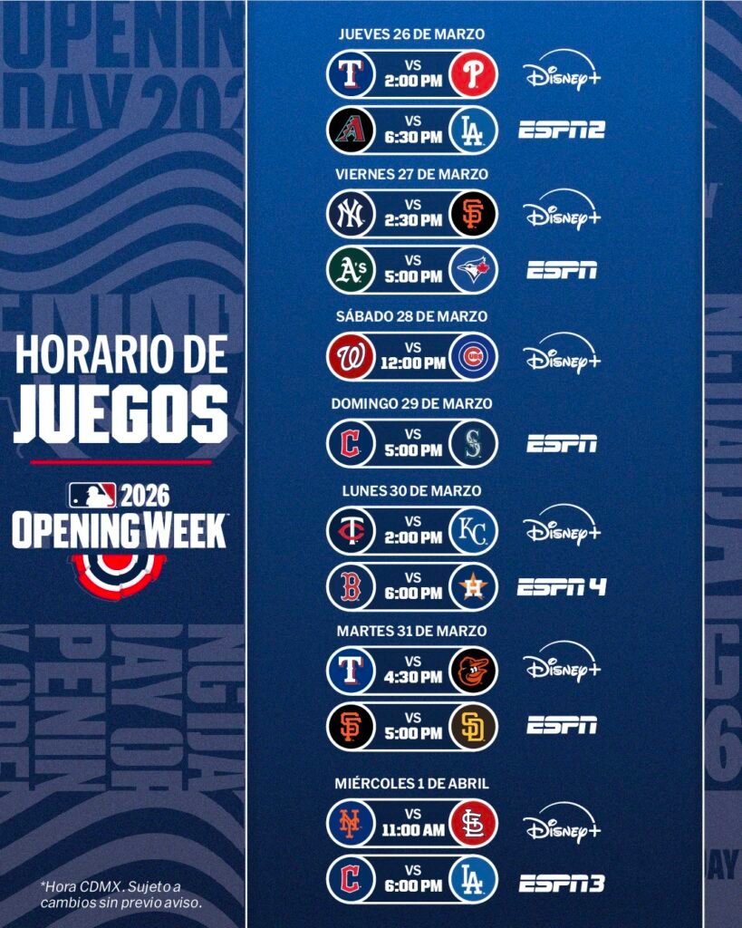 ¡La espera terminó! El diamante vuelve a encenderse con la Opening Week 2026 de las Grandes Ligas. Para todos los aficionados en México, la oferta televisiva y de streaming viene cargada con los mejores encuentros desde el Opening Day hasta los primeros días de abril.